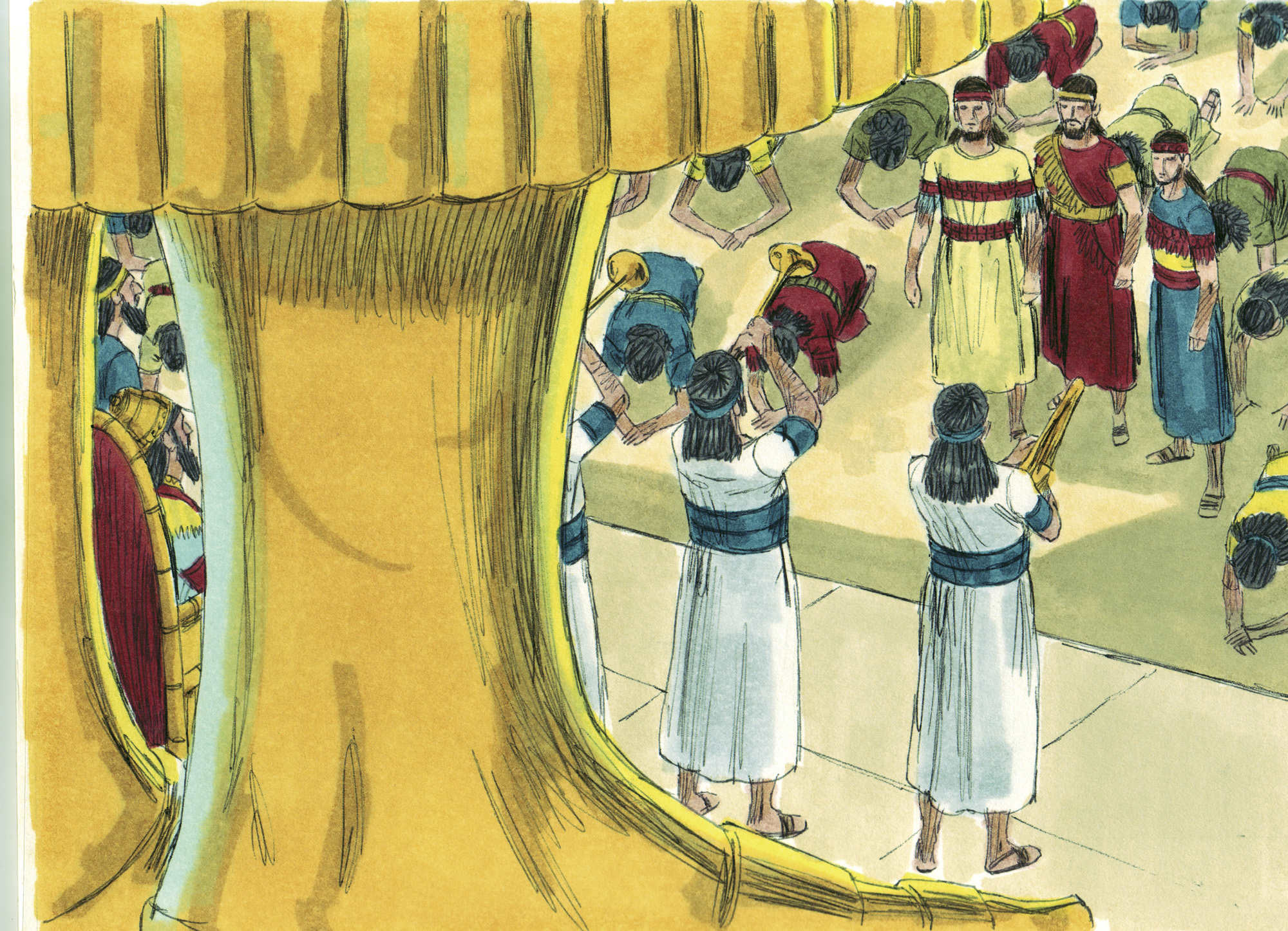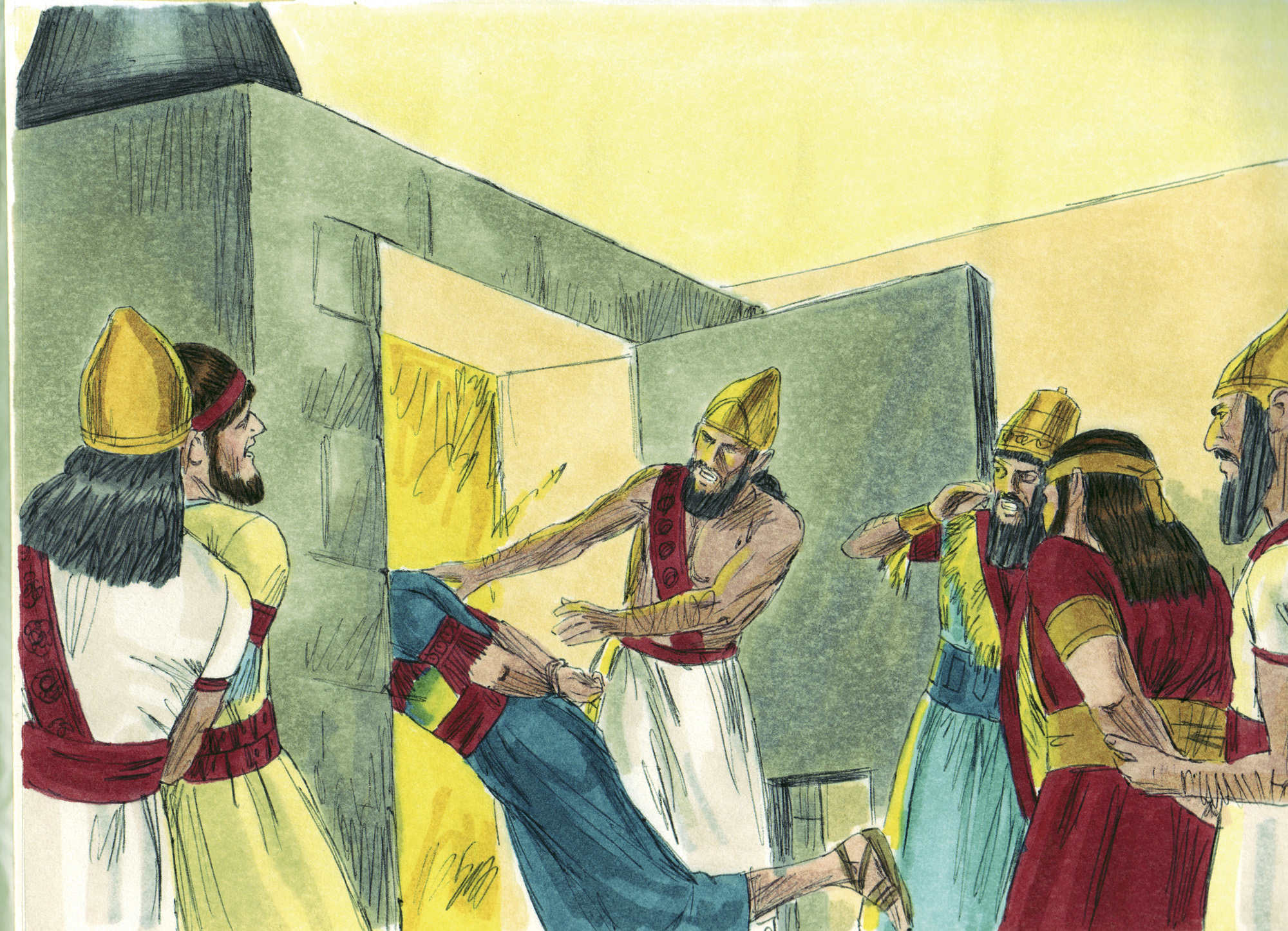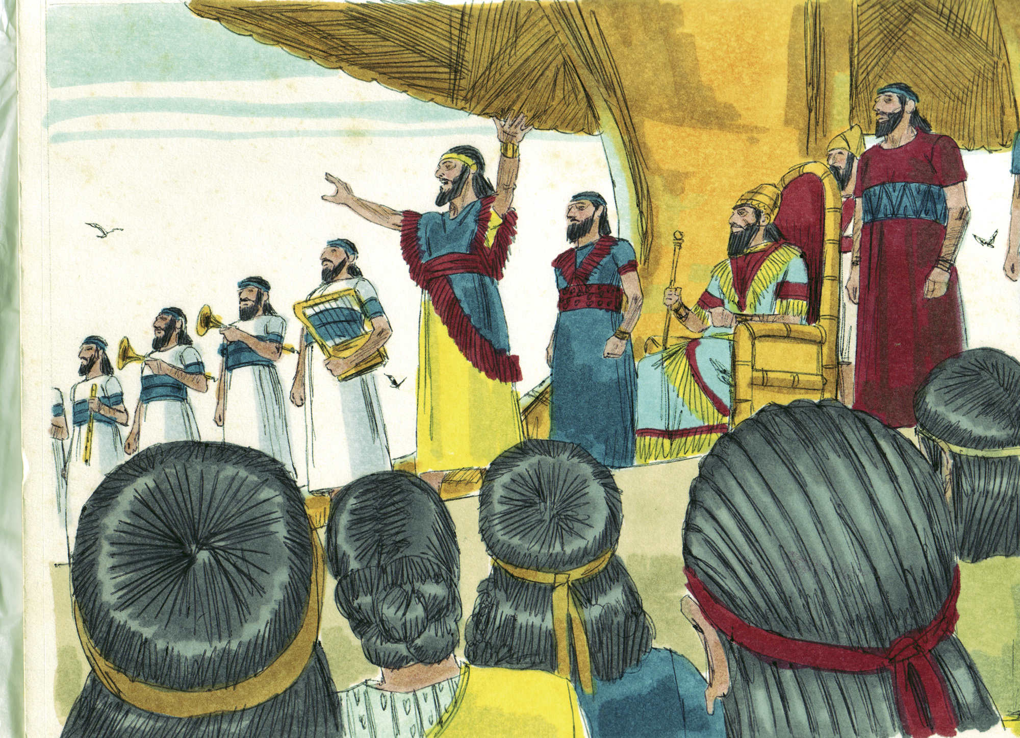| So the time of the party began, the horns were blown. Everyone gathered to worship the statue. Everyone came and bowed before the idol, except for three men | ![]() |